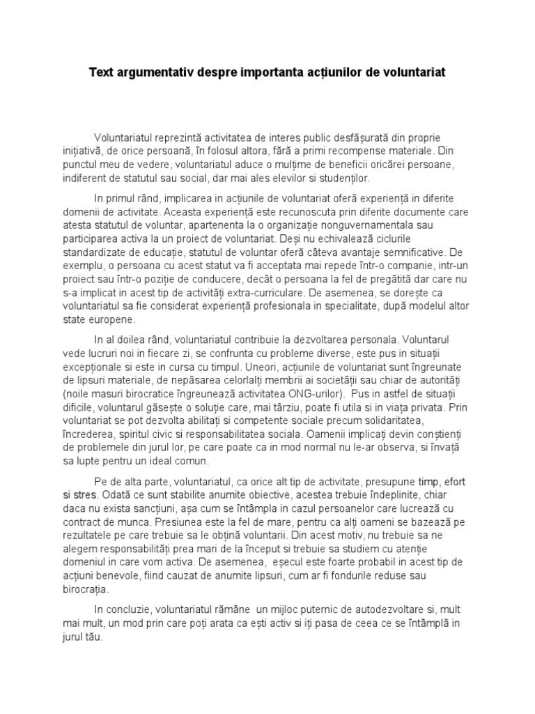 Este utilă copiilor de clasele a vii a a viii a sau poate chiar ceva mai sus o zicere latină de demult spune că o minte sănătoasă se află într un corp sănătos. Realizati un eseu argumentativ in care sa va exprimati opinia cu privire la importanta jocului in formarea omului. Inca din copilarie invatam sa comunicam sa interactionam cu lumea ce ne inconjoara prin intermediul jocului. Text argumentativ despre sport.
