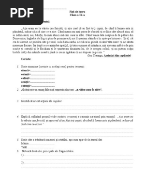 Www amintiri din copilarie ro teste 2020. Online pe site ul www amintiri din copilarie ro telefonic la numărul 0756 120 300. Prima pagină învăţământ gimnazial limba şi literatura română teste test de lectură amintiri din copilărie test de lectură amintiri din copilărie 14 ianuarie 2018 18 08. Amintiri din copilarie ro teste clasa pregatitoare test 1 1 downloaded from www kalkulator zivotniho pojisteni cz on september 26 2020 by guest epub amintiri din copilarie ro teste clasa pregatitoare test right here we have countless book amintiri din copilarie ro teste clasa pregatitoare test and collections to check out. Amintiri din copilărie capodoperă de ion creangă rezolvă testul amintiri din copilărie capodoperă de ion creangă pe platforma educațională kidibot.